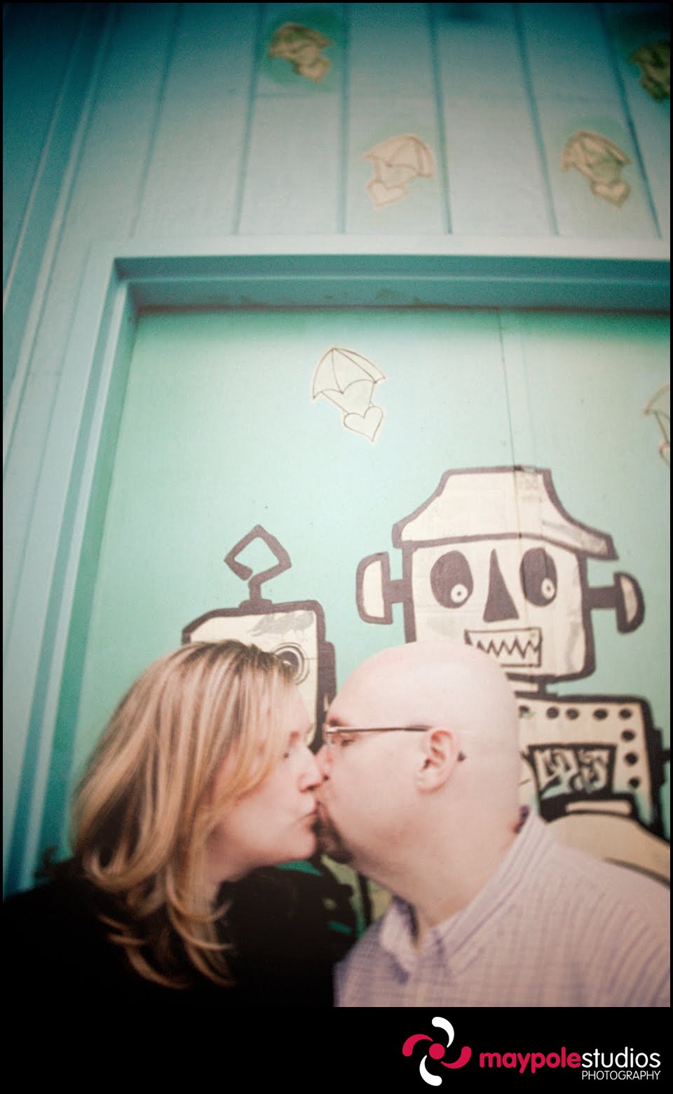 Nancy and Erik seem to be perpetually sharing a great inside joke, they exchange smiles and giggles as they walk hand in hand around the Wicker Park neighborhood. They are best friends, darling and in-sync. I was thrilled when they suggested we walk around and take photos in front of their favorite graffiti’d walls, there were a few I had spotted recently that I had been dying to photograph. So many cool colors created a great backdrop for this super cute couple, a wonderful and vibrant urban setting for their sweet glances and displays of affection. We had a blast roaming around finding new nooks for our photos. Thanks to you for being so fun to work with, I can’t wait for your wedding in November! (at the fabulous Architectural Artifacts)