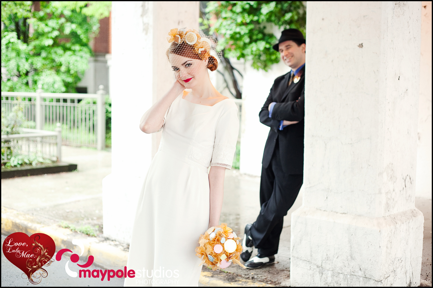 Part two of our fabulous shoot, combining Love Lulu Mae creations with the Chicago-based Busy Beaver Buttons, giving way to brand new accessories perfectly suited for a wedding. Our wonderful models showed off bouquets, veils, belts, and boutonnieres. The results are wonderful! This is part two of a two part shoot (the first is below).