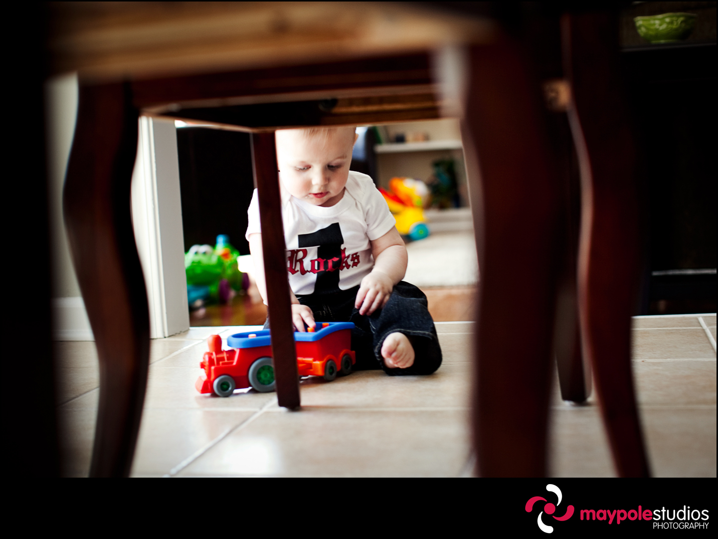 One of the best ways to keep in touch with my past brides and grooms is by documenting their new families. I photographed Megan and Kevin’s wedding, and now I have the great joy of taking pictures of the adorable Jackson. I met up with them on his first birthday for a portrait session, what a cutie! He has awesome blue eyes just like his mom and a super smile just like his dad. We followed him around as he crawled rapidly from room to room, played with lots of toys, and managed to get some great giggles out of the little man. Here are some of my favorites: