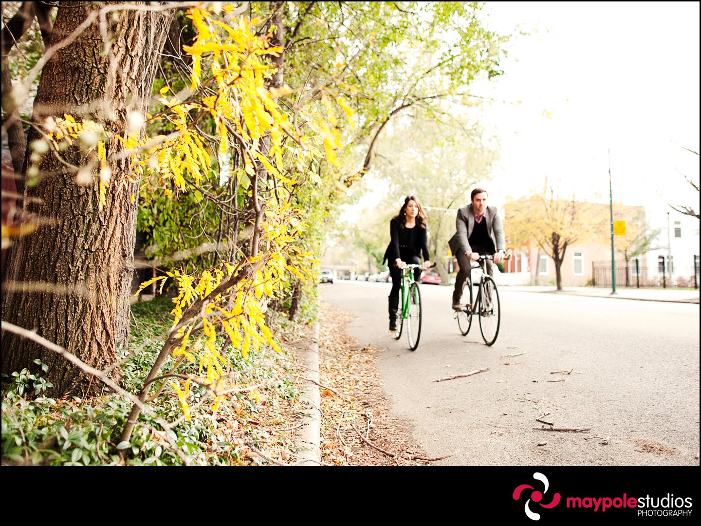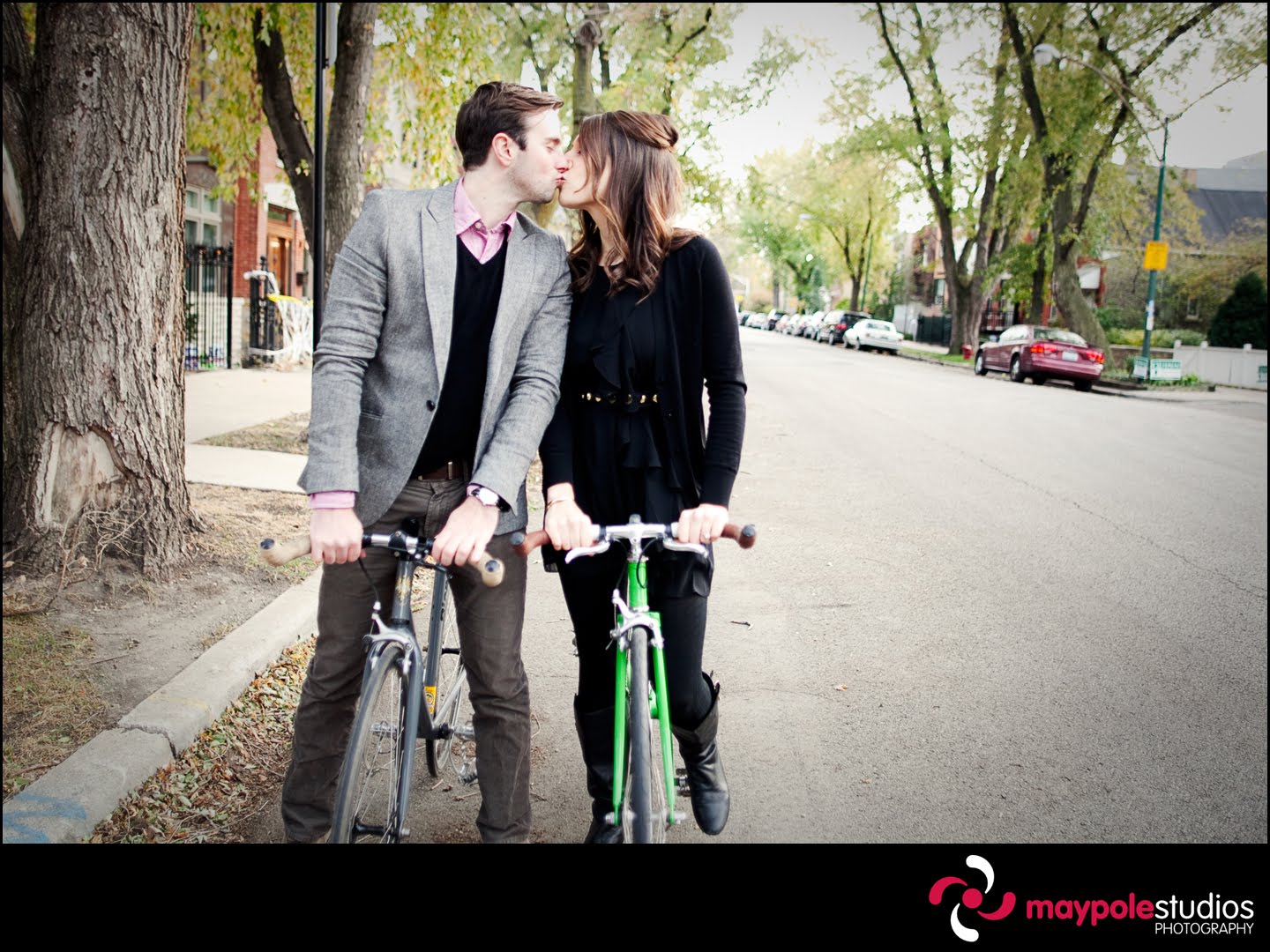 When Nicole and Adam suggested we stroll around our Bucktown neighborhood for photos, I was all for it. Not only are they easy on the eyes and look like they stepped off the pages of a magazine, but they are fun loving and and super into each other. How easy is that? Cute couple? Check. Nice Fall afternoon? Check. Bicycles, swings, and cool urban locations? Check! Thank you both for being the lovable and attractive couple that you are, I think the results of our relaxed photo session say it all. Here are some of my favorites.