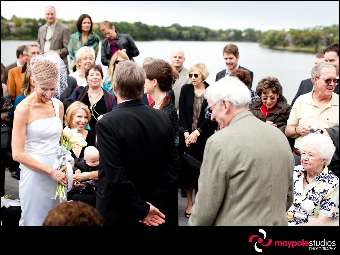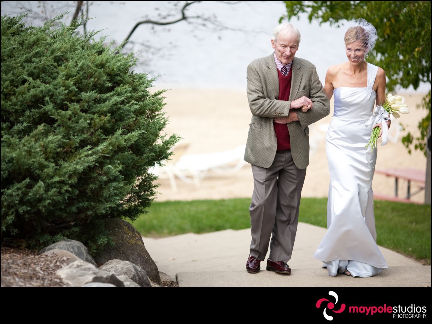 The maid of honor gathered up the dress as we headed to the boathouse.