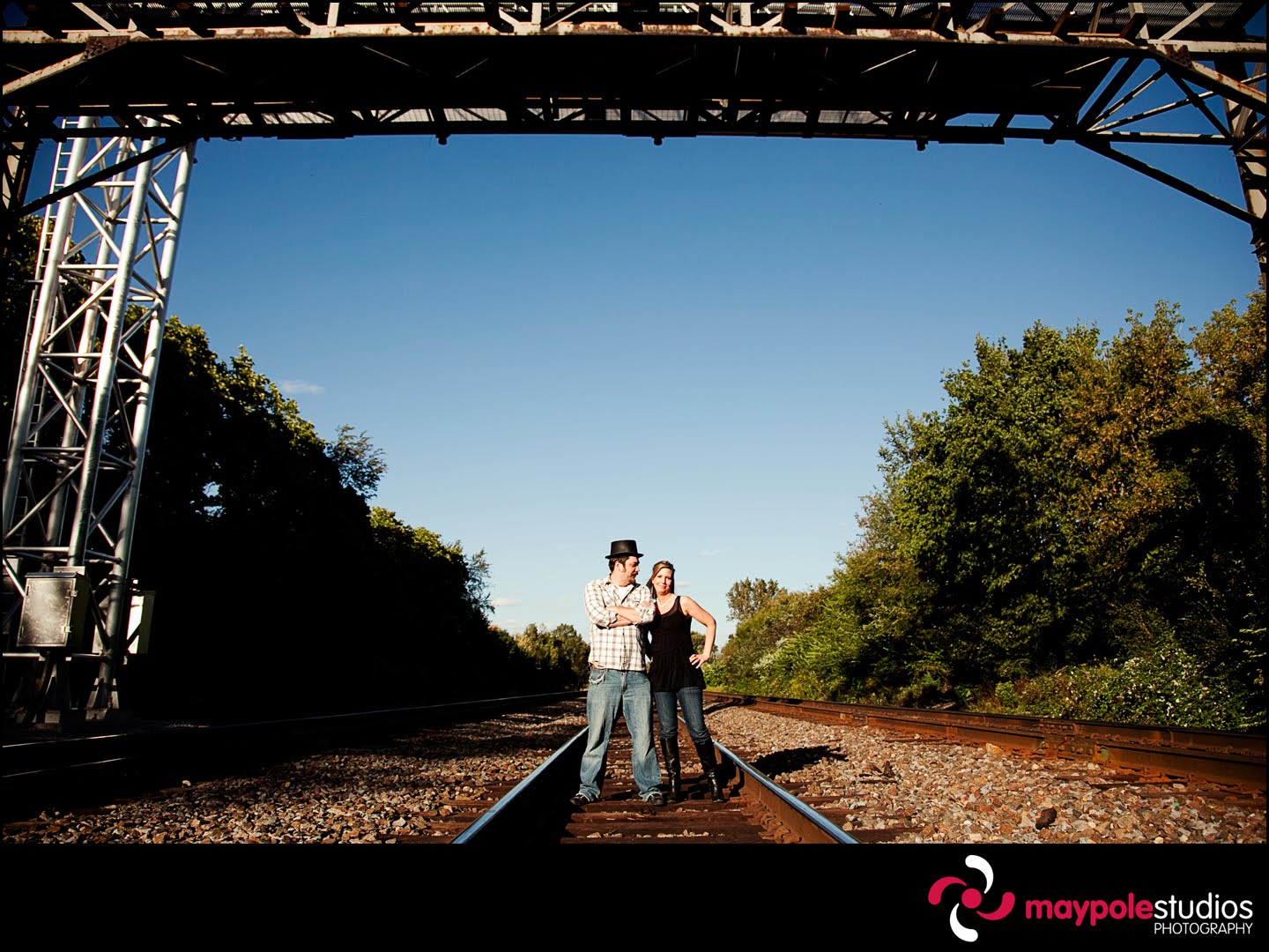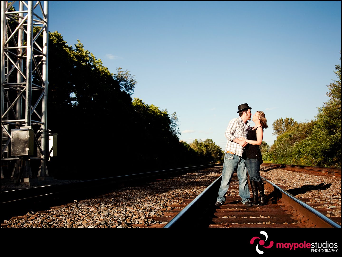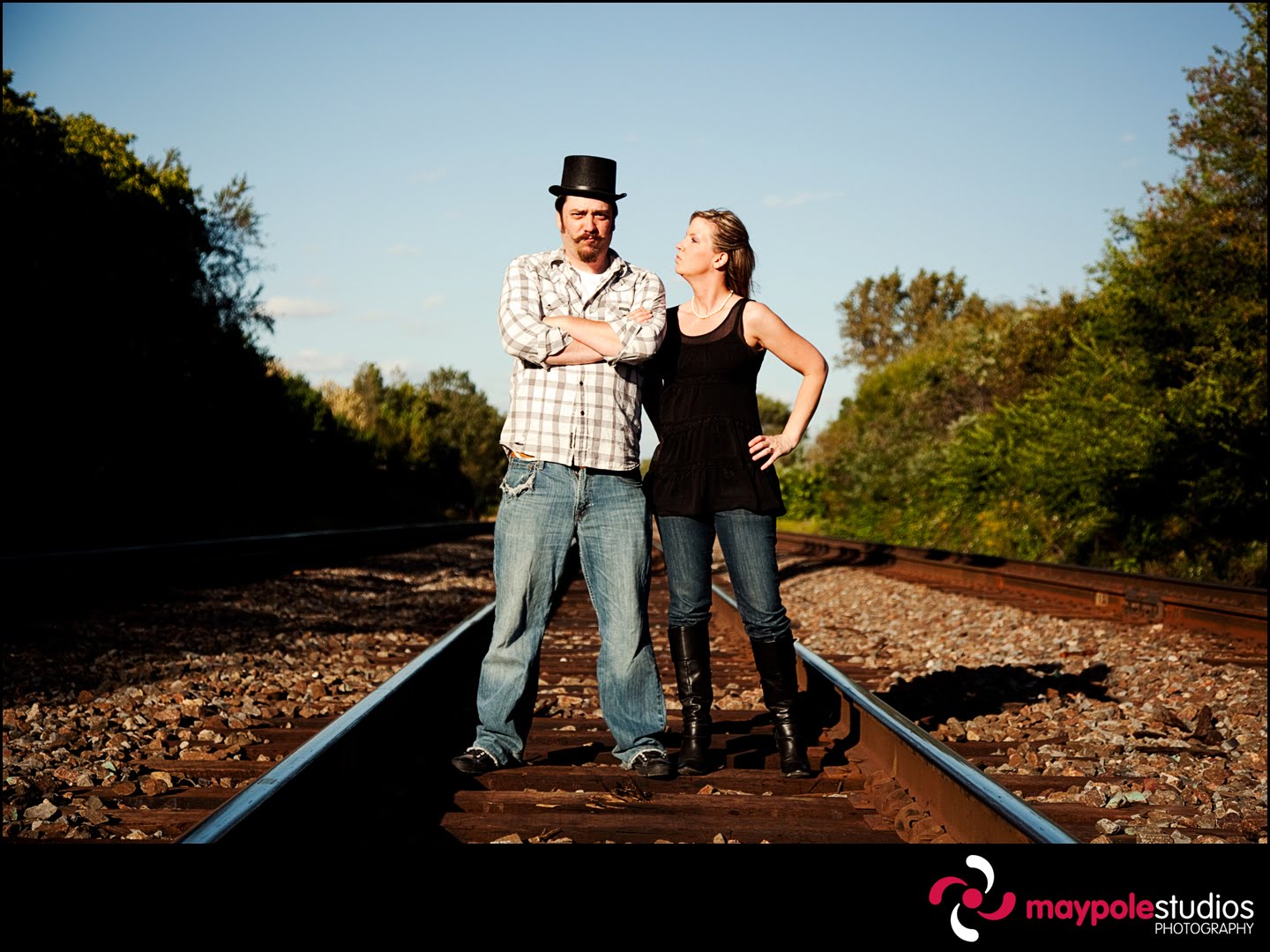 Why do the good girls always love the bad boys? Funny enough, when Carrie first met Jason she was not interested. His devilish grin and amazing sense of humor finally won her over, and now they’re getting hitched. They tease and joke, play up the pda and then bust out laughing at their silliness. They are great drinking buddies and terrific company, spending time with them is always a guaranteed barrel of laughs. I was thrilled when they asked me to photograph their wedding, and knew that I would be in for some unique photo opportunities. For their engagement photos we decided to forego the Chicago city skyline and head over to the train tracks behind his parents house, the place where he would sneak out to with friends back in high school. We goofed around, had a couple of beers, and took some silly photos. Although Carrie would most likely beat Jason in a wrestling match, we pretended that he was a villain out of an old silent film and she played the role of the damsel in distress. Stay tuned for the video version (by Jeremy Bircher), it’s going to be a riot! Thanks Carrie and Jason for playing along with a crazy idea and being totally awesome!